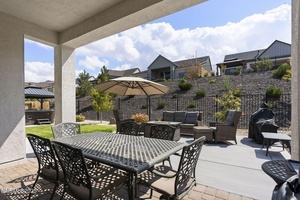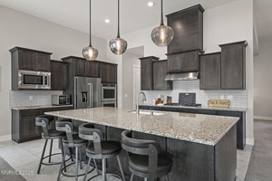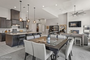 The large sliders lead to a fully landscaped yard with a large patio, a hot tub, and a gazebo. It makes for a wonderful place to relax or entertain. The generously sized primary suite features a large walk-in closet, double sink vanity, and a luxurious walk-in shower with upgraded shower doors. A few special upgraded features worth noting are Solar Panels, a Tesla charger, encased windows, tasteful chandeliers, and pendant lights. Ridgeline at Carmella Ranch offers resort-style amenities, including a pool, spa, and gym. This move-in-ready home is conveniently located close to schools, parks, walking trails, upscale shopping, easy freeway access, and just a short drive to breathtaking Lake Tahoe!