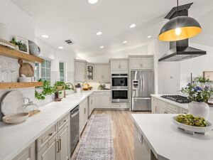 The kitchen shines with quartz countertops, freshly painted cabinetry, an extra-large deep sink, extended backsplash, new hardware, new faucet, and brand-new stainless steel appliances. Both bathrooms have been fully remodeled with clean, modern finishes. Enjoy vaulted ceilings, a ton of natural light, and everyday moments surrounded by nature and local wildlife. The 3-car garage, mudroom entry, and spacious laundry room add practical touches, while the large walk-in pantry offers plenty of storage space.