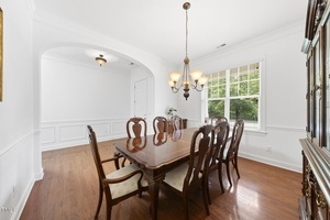 Welcome Home to this stunning home in Cary! Nestled on a quiet cul-de-sac street, this property offers an exceptional living experience, starting with its welcoming front porch. The heart of this home is an expansive kitchen featuring a gas cooktop and is complimented by a spacious, sun-drenched breakfast nook and dedicated formal dining room. The bright living room provides an inviting gathering space. Formal dining room could be used as an office. Upstairs, discover oversized bedrooms that offer comfortable and private retreats. Step outside to a beautiful fenced-in yard, perfect for outdoor enjoyment. Fresh paint (2025) and recently replaced HVACs (2022), water heater (2022), roof & gutters (2023) make this home move in ready. This spacious & thoughtfully designed home is in a highly desirable location and is just minutes to Apex Community Park, Costco, & Whole Foods!