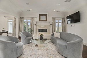 Private office and gas fireplace makes the upper level a supreme retreat. Exquisite finishes include engineered hardwood floors and crown molding. Finished 1216 square foot basement has the perfect space for your custom wine cellar or humidor. Commercial gym under the garage adds an additional 519 square feet with steam room and full bath. Complete privacy behind custom walls with ornamental iron gates.