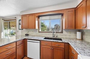 Efficient kitchen space has refaced cabinets with granite counters, casual eating bar and opens to dining room. Both bathrooms have had a complete remodel with custom touches. Covered patio is ideal for outdoor dining and a relaxing lifestyle.