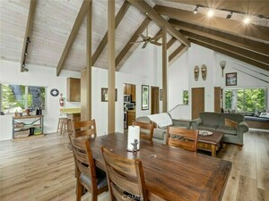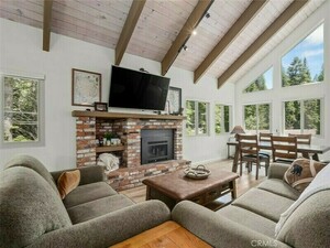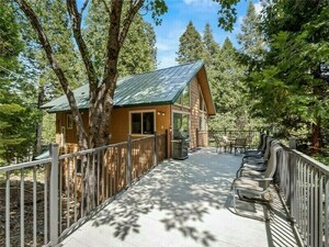 Selling fully furnished! This charming custom-built, fully furnished 3-bedroom, 2-bathroom cabin offers the perfect blend of comfort and nature. Nestled at the end of a cul-de-sac in the highly desired & sought after Fish Camp location, this home is a must see! Savor the stunning views from the composite deck, overlooking majestic Ponderosa Pines, Cedars, and Oak trees, and fully immerse yourself in nature’s beauty. Inside, you’ll find a gorgeous vaulted beamed ceiling, newer flooring and a gas fireplace in the living room to enjoy those cold winter nights.
