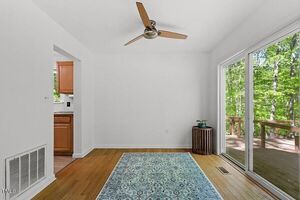 Enjoy the privacy and seclusion of nature on a quiet street just far enough away from the hustle and bustle! This 3 bedroom, 1.5 bath duplex with its own private driveway is situated on a .73 acre lot and only a 15-minute drive to Carrboro/Chapel Hill UNC or Pittsboro, 30 minutes to Durham, or 45 minutes to downtown Raleigh. A grocery store and restaurants are also conveniently located less than a mile away. Nestled amongst the trees on your expansive deck or around your cozy fire-pit, you’ll enjoy the sights and sounds of nature – owls, deer, butterflies, and hummingbirds have all been spotted! A large outdoor shed with its own porch provides ample space for garden storage, a workshop, or an art studio; with NO HOA and no restrictions, the possibilities for this property are endless!