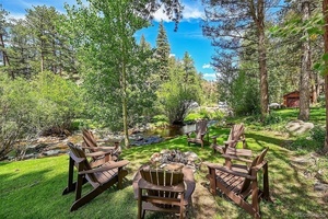 Outside, a spacious deck overlooks the babbling creek, offering the perfect spot for morning coffee or evening stargazing. The surrounding grounds are dotted with towering trees, creating a private oasis where wildlife sightings are a common occurrence. Whether playing in the water, enjoying the lush lawn, or sitting in the hot tub, this yard is a haven for outdoor enthusiasts.