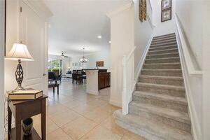 BEAUTIFULLY maintained 4-Bedroom Home overlooking Eagle Creek Golf Course! Located in the gated golf community of Eagle Creek and the privately gated Curzon Place, this tastefully upgraded 4-bedroom, 3.5-bath residence combines comfort, style, and function-perfect for family living and entertaining. Step inside to find elegant crown molding, fresh paint throughout (including ceilings, doors, walls, and baseboards) in an open concept living space!