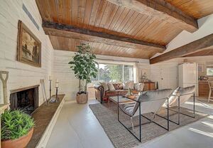 Own a rare piece of California history with this iconic 1963 Weir Brothers adobe in the peaceful Lazy H community of Pauma Valley. This 2 bed, 2 bath, 1,538 sq ft architectural gem is filled with soul-featuring authentic WWII-era Douglas fir beams, handcrafted adobe walls, a wood-burning fireplace, and rich wood ceilings that honor its mid-century roots. The remodeled kitchen is a true standout, blending modern functionality with Instagram-worthy mid-century flair-perfect for creatives, entertainers, and lovers of design.