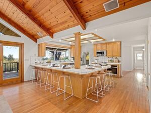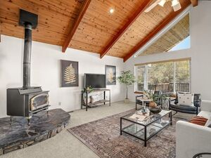 Outside, take in the gorgeous views from the beautiful redwood deck, or relax in the built-in spa. This home was intentionally built facing south, with abundant windows to maximize natural light. The curb appeal is unmatched with a striking entrance that welcomes you home. The property also features designated concrete work for basketball games, providing a fun & active outdoor space.