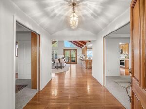 Step inside to a spacious, open layout highlighted by vaulted pine ceilings & real hardwood floors in the main living area. The grand entryway welcomes you with a formal dining room on one side & a dedicated office on the other, creating a perfect balance of elegance & functionality. The expansive master suite features a huge walk-in closet and a luxurious master bath. The home is equipped with a newer roof & HVAC systems, plus owned solar.