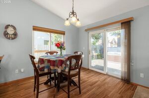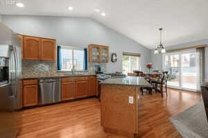 Step inside this meticulously maintained single-level ranch, built in 1995, where vaulted ceilings create an airy and expansive feel throughout. This inviting home features 3 comfortable bedrooms and 2 well-appointed bathrooms. The primary bedroom is a sanctuary unto itself, complete with a generous walk-in closet and an en-suite bathroom featuring a double basin sink and a separate shower. The heart of the home, the kitchen, is vaulted and equipped with modern stainless steel appliances, perfect for any home chef. Adjacent to the kitchen, the dining room offers a seamless flow to the back patio through a convenient slider, ideal for indoor-outdoor living. Outside, your large corner lot awaits, transformed into a serene escape. Imagine unwinding in the hot tub, surrounded by established trees, an array of colorful flowers, and mature bushes, creating a picturesque setting. A 2-car attached garage provides ample parking and storage. This home perfectly blends comfort, style, and a fantastic outdoor lifestyle.