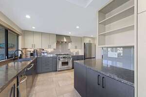 High-end kitchen includes Dacor 6-burner gas stove, Samsung bespoke fridge.