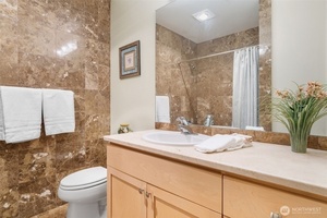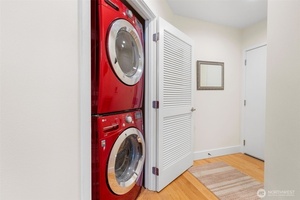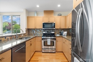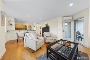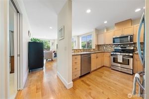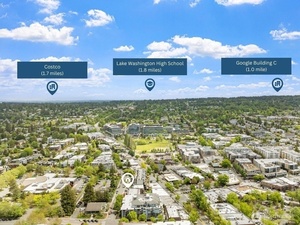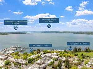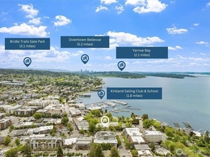 Just steps from Lake Washington, this two-bedroom, two-bath corner unit is ideally situated in the heart of downtown Kirkland. Enjoy peek-a-boo lake views from the private covered patio and oversized windows, with an open floor plan featuring oak hardwood floors, slab granite countertops, and a kitchen with a breakfast bar for four. New dishwasher, washer/dryer, blinds, and stay comfortable year-round with the A/C unit. Additionally two secure parking spaces and access to a fitness center. Walk to Heritage Park, Marina Park, Google, and a wide selection of restaurants and shops just minutes from your door. This is urban living meets waterfront charm!