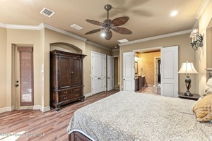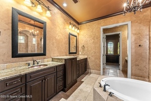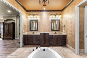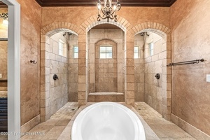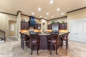 Luxury Home Builders personal home loaded w/ everything you can imagine in a dream home! From the old world texture exterior to the travertine floors throughout the home, you will fall in love! A true gourmet island kitchen accented by cherry cabinets w/ a chocolate glaze, & granite counters! Spacious master retreat boasts a center jacuzzi tub w/ wrap around dual shower, separate vanity & flex room! Entertaining lagoon heated pool area w/ summer kitchen under screen. This layout allows a lot of flexibility w/ the large front office, 2 bdrm 1 bath wing, back guest suite wing w/ full bath, upstairs 6th Bdrm suite w/ additional play room or media room and outside balcony, & the large downstairs master suite! Huge 4-car garage w/ EV charging! Some of the extra features include a mail center off the garage, crown molding, soaring ceilings & so much more! Impeccable craftsmanship went into this home! New Roof (2023) Newer Refrigerator, Water heater, Front Door, Laundry