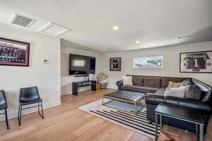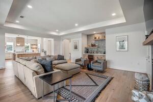 MOTIVATED SELLER. Luxurious elegant home on a beautiful corner lot across from acclaimed Kolter Elem! Spectacular curb appeal with mahogany front door, copper gas lanterns, and slurried brick. This 5-bed 5-bath 5,511 sq ft home includes French oak engineered wood floors, white oak beamed ceiling, paneled office, formal dining room with custom wall design, 2 wine vaults. Open concept of kitchen, living room, and eating. The Chefs kitchen includes double white oak islands and marble countertops. Living room includes slider doors, fireplace with marble surround, and a wine bar. Massive game room with separate entrance that could be made a guest apartment. Covered back patio includes an outdoor kitchen with grill, fridge, sink, storage, and television with electric shade. Backyard is fully turfed with putting green. Primary suite includes an accent wall, oak ceiling and upscale ensuite w/ Italian porcelain with huge closet! All bedrooms include ensuite baths! CAD wire security system.