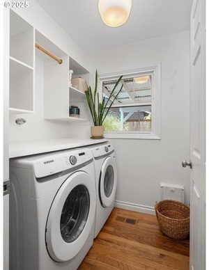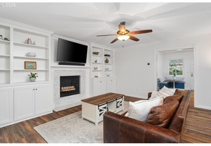 This 1968 Beaverton home blends classic style and thoughtful updates, offering light-filled rooms and versatile spaces for everyday living and entertaining. Original hardwood floors run throughout and large windows bring in abundant natural light. The main floor includes a welcoming living room, a large dining room, a family room with built-ins & a wood-burning fireplace, and a kitchen that connects easily to dining and family spaces. Enjoy the fenced backyard with four raised beds, a covered patio perfect for summer barbecues, and a freestanding insulated Tuff Shed.