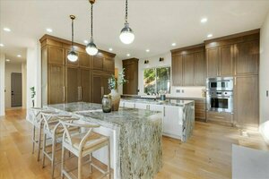 Enjoy complete privacy with a long gated driveway and no neighbors in sight. The grand entry features soaring ceilings and south-facing windows that flood the home with natural light. Gorgeous hardwood floors span the main level, leading to a gourmet kitchen with two islands, double ovens, a Wolf cooktop, and built-in Sub-Zero refrigerator.