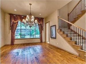 Gorgeous hand-scraped wood floors in this multi-purpose room