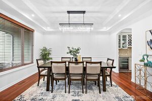 This stunning custom-built Craftsman home, located on a ¾ acre lot at the end of a private cul-de-sac, features 5 bedrooms and 4.5 baths, all with luxury finishes. Highlights include Brazilian cherry hardwood floors, granite countertops, and high ceilings that enhance natural light in the family room. The main floor has a bedroom with an en-suite bathroom, while the upper level offers 4 additional bedrooms, each with an en-suite bathroom.