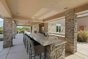 This luxurious home of 3,548 sf, has 5 possible bedrooms, office, and great room. The kitchen features a dining bar and breakfast nook, the convenience of a huge laundry room and extra mudroom. On 2 acres you can entertain in style with an outdoor kitchen, with 44’‘ grill with rotisserie, dual side burner, wine refrigerator, beverage refrigerator, stainless cooler box, and ample storage.