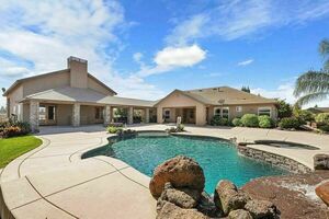 For RV owners, there’s a 42’ by 22’ enclosed storage or shop with 14'x12’ doors, providing access to the pool house/game room/man cave. The Pebble Tech pool and spa, with a custom rock waterfall, offer a luxurious retreat. The property includes your own red barn for storage or livestock equipment, covered paddocks, pipe fencing, auto waterers, and large pipe-fenced pastures, making it ideal for horses or livestock. Front wrought iron and stone fencing with two automatic gates ensures privacy and security.