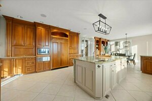 The lower level offers versatile living options, featuring a family room with a wet bar, a second fireplace, built-in custom cabinetry, and abundant natural light that enhances the scenic surroundings. This level is thoughtfully designed to support multi-generational living, ensuring that every family member finds their ideal space.