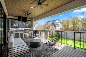MOTIVATED SELLER. Gorgeous high quality home on a beautiful corner lot across from acclaimed Kolter Elem! Spectacular curb appeal with mahogany front door, copper gas lanterns, and slurried brick. This 5-bed 5-bath 5,511 sq ft home includes French oak engineered wood floors, white oak beamed ceiling, paneled office, formal dining room with custom wall design, 2 wine vaults. Open concept of kitchen, living room, and eating. The Chefs kitchen includes double white oak islands and marble countertops. Living room includes slider doors, fireplace with marble surround, and a wine bar. Massive game room with separate entrance that could be made a guest apartment. Covered back patio includes an outdoor kitchen with grill, fridge, sink, storage, and television with electric shade. Backyard is fully turfed with putting green. Primary suite includes an accent wall, oak ceiling and upscale ensuite w/ Italian porcelain with huge closet! All bedrooms include ensuite baths! CAD wire security system.