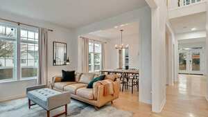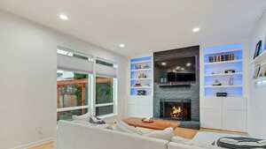 Upstairs, you’ll find two more bedrooms, a tastefully remodeled bathroom, and a laundry room with washer and dryer included. Smart lighting is installed throughout the home, and the two-car garage comes with an automatic opener. A new roof was installed in 2020, and the home also includes a gas furnace and air conditioning.