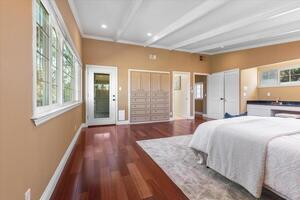 Inside, the entire second floor is a dreamy primary suite escape with its own private balcony. The main level offers 3 spacious bedrooms, a spa like hall bath, soaring ceilings in the living room, a dining nook with bay window plus bench seating, and a kitchen with rich wood cabinetry, granite counters, and stainless steel appliances.