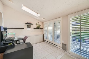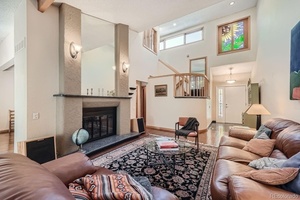 Inside, this two-story beauty reveals soaring, vaulted ceilings and upgraded features throughout. The open and airy floor plan includes glistening hardwood floors throughout the main floor and new carpet on stairs and in the primary bedroom. There’s also an extra sunroom or study space on the main level overlooking the greenbelt. The spacious upgraded kitchen is adjacent to the large dining area, which features a built-in hutch with glass doors, vaulted ceiling and soothing views of the outdoor deck and landscaped yard beyond.