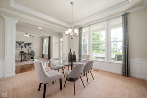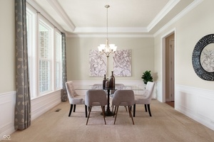 Seller offering up to $10K credit at closing. Offering a blend of spacious living, functionality, prime West Carmel location and Carmel Schools, this home with 5 Bedrooms, 5 Full Baths and 4+ car garage is waiting for your Buyer. Main Floor features 10’ ceilings, wainscoting and hardwood floors that extend throughout common areas. The inviting layout features a formal dining room w/ tray ceiling and a versatile living room, perfect for an office or music room. A convenient full bath on the main level adds to the functionality of the home as the Sunroom could be turned into a bedroom as it has a closet.
