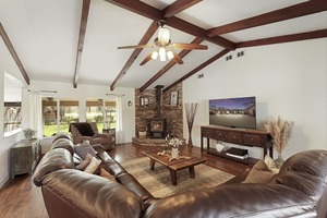 2 homes on 5 acres. Features a beautifully upgraded 3 bed, 2.5 bath home offers modern comforts, custom finishes, and energy efficiency with owned solar. The open layout features high ceilings, a gourmet kitchen, and a luxurious master suite with dual showers and patio access. Situated on a versatile property, it includes a large garage, barn/shop for animals and RV, multiple pastures and shelters for animals, and ample storage perfect for hobby farming or equestrian use. A private 2 bed, 1 bath second residence with its own yard and septic adds flexibility. With a saltwater pool, outdoor kitchen/BBQ area AND a second indoor kitchen, greenhouse, and stunning natural surroundings, this property is a rare find for those seeking space, privacy, and endless possibilities!