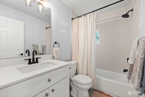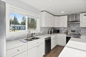 This .7-acre commercially zoned property has a fully updated 2bed/2bth with a den home to live in or rent to offset investment costs. The home has a newer roof and siding, updated kitchen, bathrooms, flooring, doors, trim and hardware throughout. Ideally located just off Orting-Kapowsin HWY, directly on 224th St E with 320’ of frontage for great access and visibility.