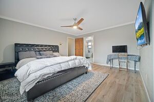 The primary suite features dual sinks, separate shower, soaking tub and roomy walk-in closet. In the expansive daylight basement there are three additional bedrooms (one with a large storage closet), and a large bonus room with full wet bar and under-counter refrigerator for refreshments. The laundry room is equipped with a table for folding, built-in ironing board, and large storage closet. Everything in this home cries spacious and roomy.