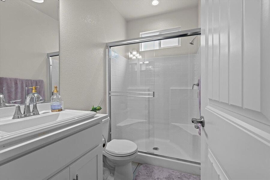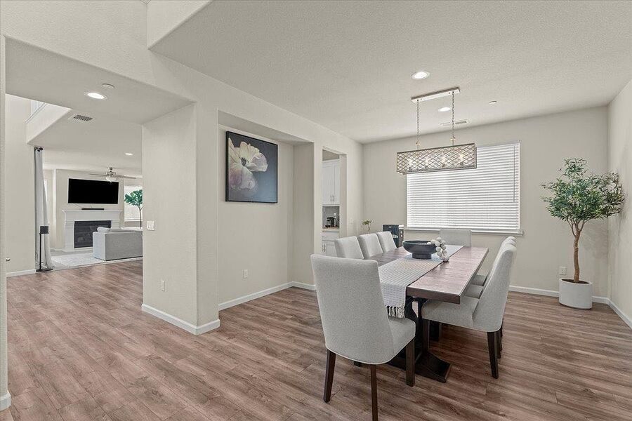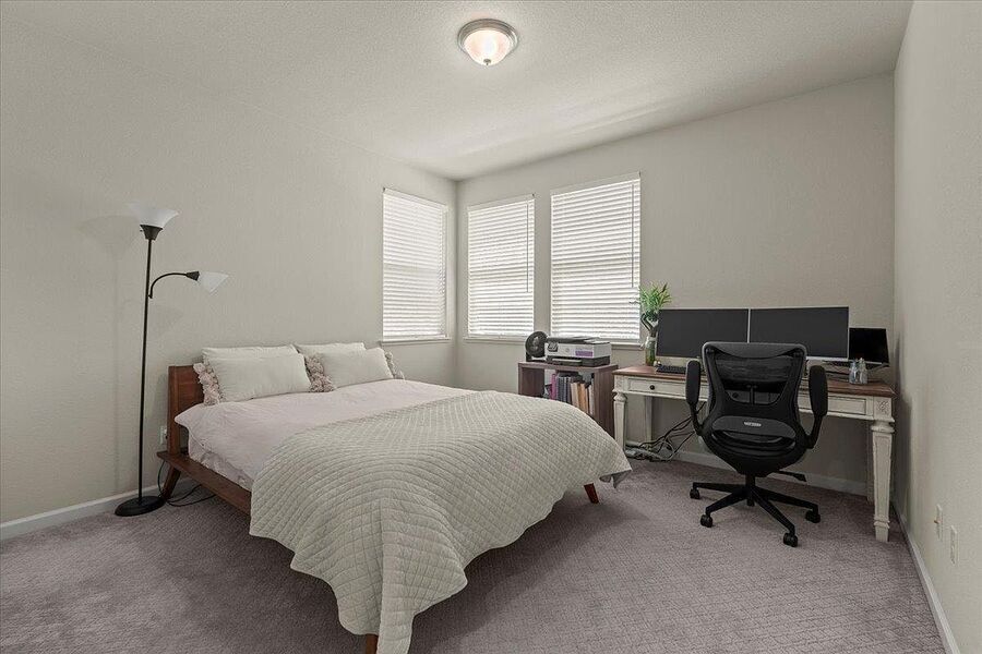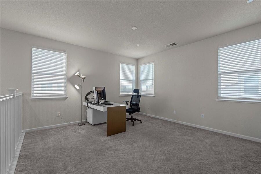 Amazing Price Reduction! Priced to sell! Stunning almost new 4 bedroom 3 bath energy efficient home with owned solar, tankless water heater and Ev charger. Beautiful luxury vinyl plank flooring throughout including the owner’s suite. Upgraded carpet in the living room, bedrooms and upstairs. Large quartz kitchen island with farmhouse sink and plenty of soft closing cabinets and drawers. Kitchen features stylish glass tile backsplash, gas cooktop, double ovens and opens to the cathedral ceilings of the breakfast nook. Formal dining room for entertaining and holiday meals. Downstairs owner’s suite has an amazing ensuite with soaking tub with designer tile, stand alone shower and huge walk-in closet. There’s an also another bedroom and full bath. Upstairs there’s a spacious loft, storage and linen cabinets, full bath and 2 additional bedrooms. Enjoy BBQs in the backyard or plant flowers and vegetables in the raised garden beds. Great location- close to Trader Joes, Target, Costco, Kaiser Hospital & medical facilities and the freeway. Book a tour today and see all the amenities this home has to offer!