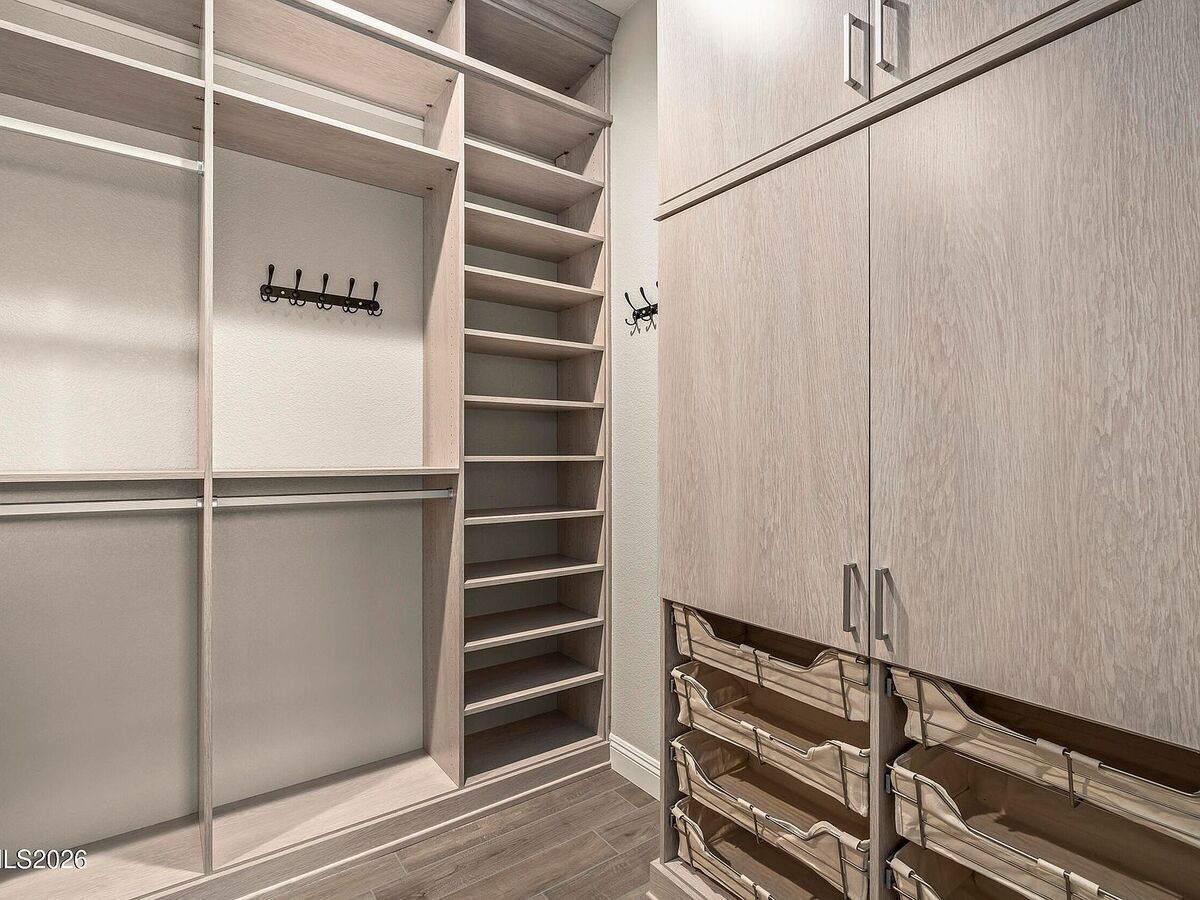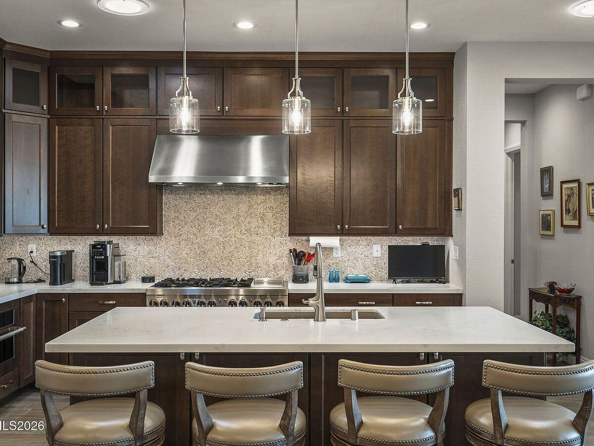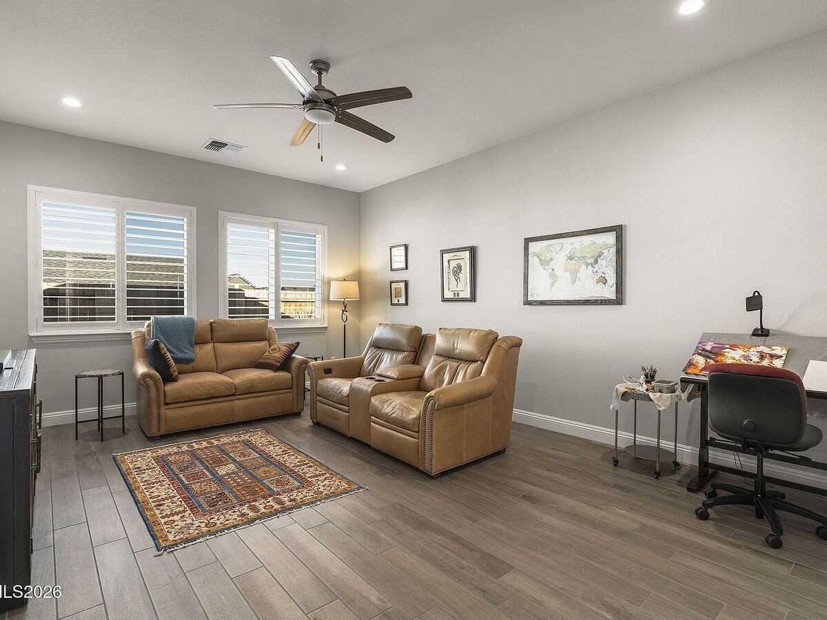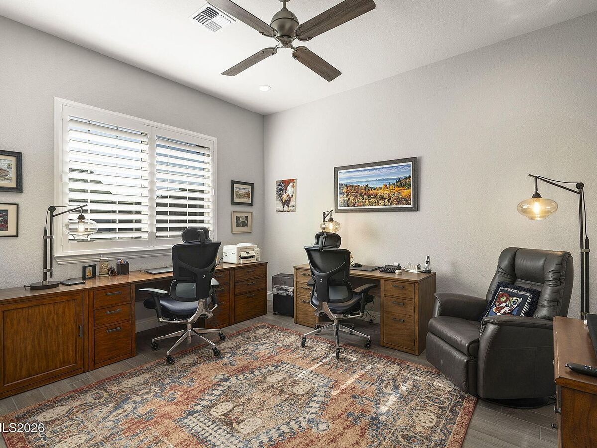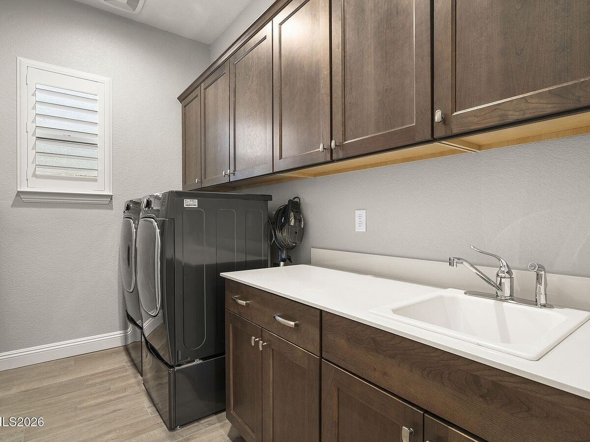 Don’t wait to build, move right in and experience luxury, comfort, and thoughtful design in this impeccably upgraded home in South Reno’s highly sought-after 55+ community. Every detail has been elevated, with over $350,000 in builder and owner upgrades inside and out. The open great room is enhanced with custom cabinetry framing the gas fireplace and brightened with four solar tubes. The gourmet kitchen boasts premium Jenn-Air appliances, a custom pantry, and a large island. Just around the corner you will find a built-in bar with wine fridge-perfect for entertaining. Both a dedicated office and a separate game room with half bath and walk-in closet provide flexible space for work and play. The primary suite offers true spa-like comfort with a roll-in shower and custom walk-in closet. Step out back through retractable screen doors to a covered back patio with a ceiling fan, a built-in Echelon BBQ and outdoor refrigerator with granite countertops, an extended pergola covered patio, and a plumbed in fire pit with mountain views -your own personal outdoor oasis. The garage is as refined as the rest of the home, featuring epoxy flooring, custom cabinets, a workbench, and retractable ceiling racks for smart, organized storage. Every inch of this home, from its xeriscaped front yard to its brand new private spa, blends style with practical comfort. 2289 White Clay Drive is more than a home-it’s a complete lifestyle upgrade, offering resort-quality living in Reno’s most desirable retirement community.