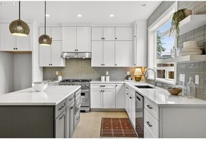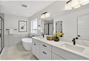 Upstairs, the luxurious primary suite is a true retreat with elegant wainscoting, vaulted ceilings, and a spa-inspired bathroom featuring double sinks, tile floors, a walk-in shower, a freestanding soaking tub, and a spacious walk-in closet. Built-ins in the guest bedrooms add charm and functionality, while a dedicated laundry room provides everyday convenience. An attached extra-deep garage offers ample storage, and the covered patio creates seamless indoor-outdoor living. Ideally located just three blocks from Mt. Scott Park and moments from all the shops, dining, and vibrant energy of Woodstock, this home delivers modern comfort in one of Southeast Portland’s most beloved neighborhoods. [Home Energy Score = 6. HES Report at https://rpt.greenbuildingregistry.com/hes/OR10244233]