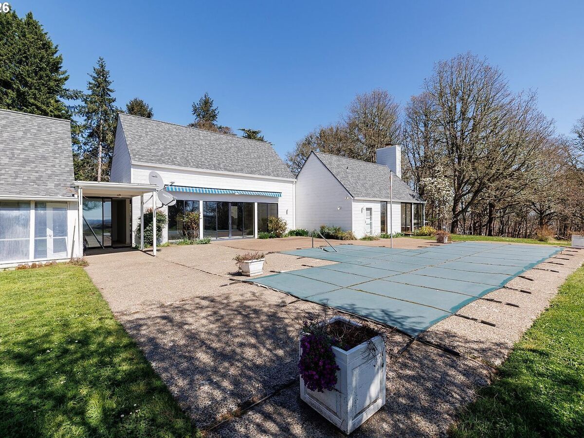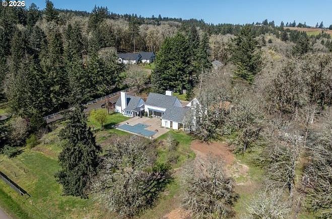 Unique, One-of-a-Kind Home on 2.5 private acres in the heart of Oregon wine country, just minutes from Downtown McMinnville. The spacious living room with wall of windows/sliders that view over your inground pool with the Valley and Mountains in the background. A gourmet kitchen, island with gas cook top and large eat bar, dining room with a built in Pizza oven (YES WOOD OR GAS) and a spacious pantry and drink cooler. Spacious primary suite with fireplace, jacuzzi tub, walk in shower and closet and a long wall of windows. Many mature and fruit-bearing trees, garden beds, multiple outbuildings including 6 X 16 chicken coop, 12 X 12 garden shed and a 20 X 30 Barn. In back of garage is a 17 X 19 Woodworking shop. Partially fenced and gated for potential animals. A loft area with full bath above the Garage/Shop, could be made into multi-generation living or perfect for an office, studio. Basement provides more storage etc. Large attic area could be remodeled to add bedrooms etc. Potential of future property division. Check with County. All of this and much more! A must see!