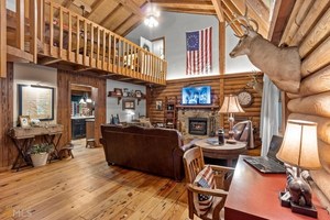 Rustic and cozy log home nestled in a quaint country setting convenient to shopping, restaurants, and I-75. This home features five bedrooms and three full baths including a spacious in-law floor plan. Pine hardwood floors greet you at the entrance and run through the main floor. You will be drawn to the cozy feel of this home the minute you walk in. High ceilings complete with wood beams run throughout the family room and kitchen that makes you want to sit in front of the fireplace. There is one master on the main with en-suite master bath. Country kitchen features granite countertops and stainless steel appliances.