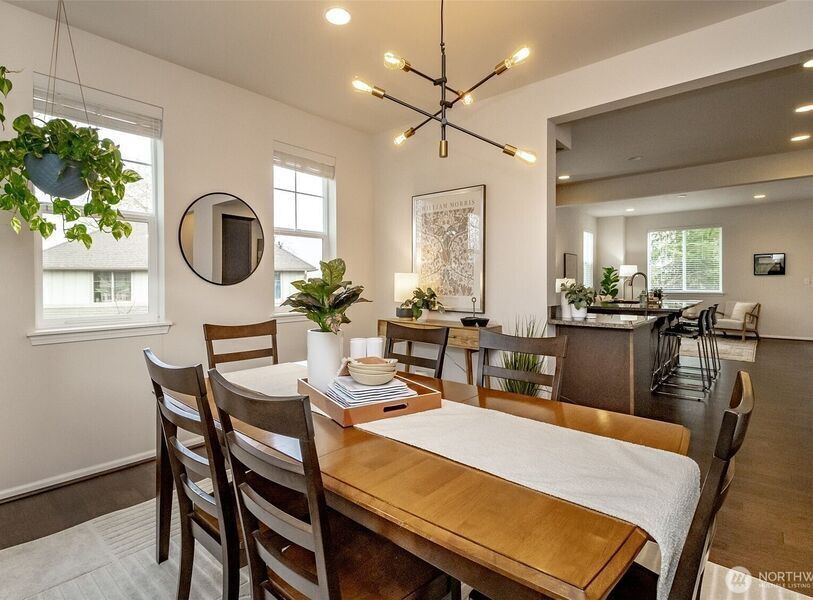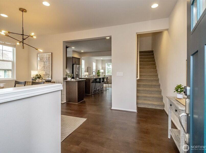 Beautiful 4BR/2.75BA end-unit townhome w/ city, bay, Space Needle & Cascade mtn views. Soaring ceilings, abundant natural light & amazing floor plan. Chef’s kitchen features a large granite island/countertops, stainless steel appliances, gas range & ample storage. Generous living room opens to a deck where you can relax & enjoy privacy & sweeping city views. Primary suite w/ upgraded walk-in closet, along w/ 2 add'l bedrooms & a conveniently located laundry area. The lower level offers a 4th bedroom & full bath, ideal as a private guest suite or an office/den. Add'l highlights include a 2-car garage w/ EV charger, mini split units for efficient heating/cooling, smart thermostats & lights, close to highly-rated Elementary school & fenced yard.