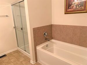 Master bedroom has a walk-in closet, plus 2nd closet and full private bath with soaker tub and separate shower. Second bedroom and 2nd full bath off the hallway. Desirable in-unit laundry room.