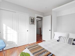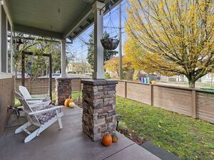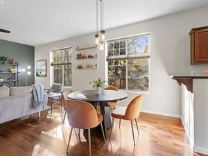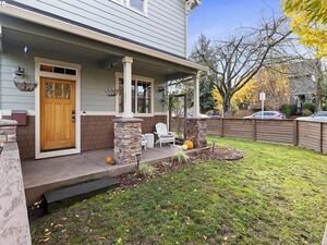 Nestled in the heart of Woodlawn’s desirable Dekum Triangle, this 3 bedroom, 2 ½ bath attached home is move in ready and walkable to the best the neighborhood has to offer. You’ll love the open, light-filled layout on the main floor with it’s huge windows, gorgeous hardwoods, gas fireplace and a slider to the outdoor patio. The kitchen features stainless appliances, wood finish cabinets, granite counters and an eating bar. The three bedrooms upstairs include the primary suite with walk in closet and full bathroom with dual sinks and shower. The third bedroom offers wood floors and flexibility with a built-in Murphy bed. Upstairs laundry adds convenience. Enjoy evening sunsets from your front porch, and cocktails on your back patio/deck. Stay cool in summer with the newer A/C unit. The garage is maximized for storage, and there is driveway parking. Walk to amazing dining spots, Woodlawn park, a local brewery and more. Open house Saturday 11/22 from 1-3 PM. [Home Energy Score = 8. HES Report at https://rpt.greenbuildingregistry.com/hes/OR10182667]