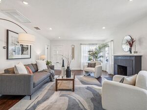 The main house has a reimagined floorplan, done by its current owners w/ deep attention paid to every detail. The living room welcomes you w/ the warmth of its hardwood floors, abundant natural light & statement fireplace & flows seamlessly to the bright dining room. Through to the generously sized great room w/ Saltillo tiles, walls of windows, storage & a laundry closet, anchored by the striking large open kitchen, w/ gorgeous butcher block counters, offering lots of storage & space for all your culinary needs, it truly creates a perfect space to entertain or unwind after a busy day. The stunning primary suite, at the front of the house, offers peaceful privacy, 2 closets & bthrm w/ dual vanities. The 2nd bd & full bthrm are off the great room, creating a nice separation of space.