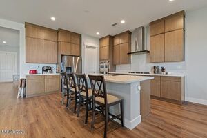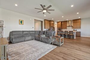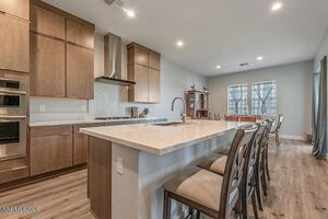 Location is key; this home backs to Andelin Farms on a quiet street with no backyard neighbors! The kitchen features quartz counter tops and ceiling-height soft close upgraded cabinets, JennAir appliances, and double ovens; one oven is a convection/microwave combo. A large walk-in pantry and coffee bar are added bonuses. A linen closet and separate laundry room with sink make laundry time a breeze. The primary bathroom features upgraded tile and a rainfall shower head. Dual walk-in closets in primary. For those who might work at home or enjoy quick internet access, there is an upgraded ethernet connection/panel. The great room features a multi-slide window overlooking the extended paver patio, backyard and mountains.