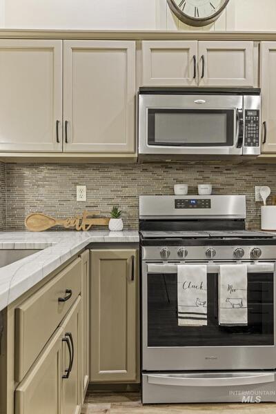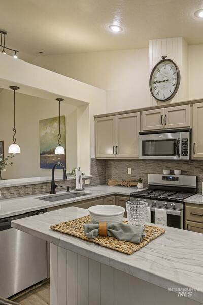 Beautifully updated end-unit townhome surrounded by mature landscaping and peaceful green space. This light-filled 2-bedroom, 2-bath home features an oversized primary suite overlooking the trees - your own private oasis with a large ensuite bath, walk-in shower, and massive walk-in closet. The fully remodeled kitchen boasts quartzite countertops, an undermount sink, gas stove, and stylish finishes, opening to a cozy living room with a gas fireplace. Enjoy LVP flooring, ample storage, and a bright, inviting floor plan. Additional highlights include built-in shelving in the garage and a water softener. HOA covers all landscaping, sprinklers (irrigation), and exterior paint-offering the ultimate low-maintenance, lock-and-leave lifestyle or excellent rental potential. Community amenities include an in-ground pool and park-like grounds. Fantastic Boise location close to shopping, medical, and great restaurants.