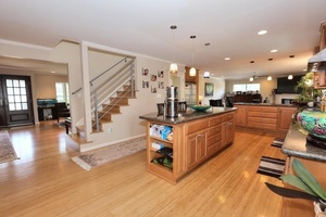 This impeccably remodeled home sits atop a hill on a 1/3 acre lot in Wilhaggin Estates, surrounded by amenities like top ranking schools and only 3 blocks to the scenic American River with its miles of biking/hiking trails. With the perfect blend of classic and modern, a total renovation completed in July 2008 has highlights of custom woodwork and glass in the entry and dining room that provide the perfect place to showcase your favorite art while enjoying your dining experience illuminated by the beautiful hand-made Venetian dining room light fixture. The ground floor features bamboo flooring in all the living areas and continues seamlessly up the stairs.