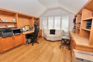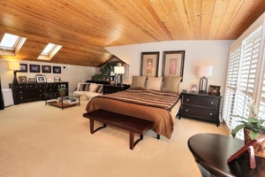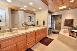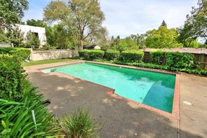 The open kitchen has custom maple cabinets, a large center island, top-of-the-line Thermador and Viking appliances. Upstairs the Primary bedroom with beautiful wood vaulted ceilings and a retro Mid-Century modern fireplace leads to a rejuvenating spa-like steam shower and jetted tub. The Primary bath has a generous walk in closet, dual sinks access to a large deck giving lush views of the surrounding neighborhood, mature landscaping and pool. In addition, there’s an extra large bonus room upstairs that can function as both a bedroom and an office and 2 generous bedrooms downstairs with one having a remodeled en-suite bathroom.