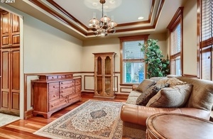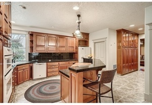Grand custom home in Abiqua Heights! Step into the warmth and beauty of exquisite design. Drift through an open floor plan on the main level - a gourmet kitchen with cherry wood cabinetry and granite counters, with a fireplace in the living area, plus an office and half-bath. Head upstairs to the comforts of 4 beds and 3 baths, including an expansive primary suite. Head down to the second office, then tinker away in 2 garages fit for a workshop, RV, or fleet. Rested upon the park commons in the midst of the community. Come home and lounge!