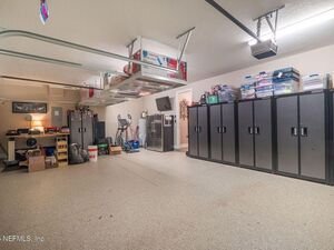 Upstairs, spacious loft to create a home gym, craft space, playroom, or movie night retreat. The impressive garage has Shark coated floor, Craftsman cabinetry, No CDD