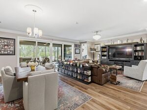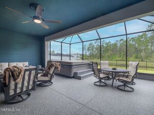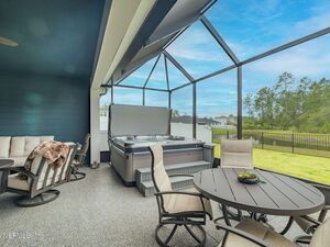Oversized screened patio overlooking pond. Picture evenings soaking in the hot tub built for seven to eight guests. Inside, elevated details like 7’‘ crown molding, stylish fandeliers, and magnetic door stops reflect the care poured into this home.