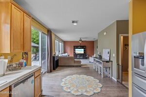 The open-concept kitchen boasts newer LVP flooring and flows seamlessly into the living areas, creating the perfect setting for modern living and entertaining.
