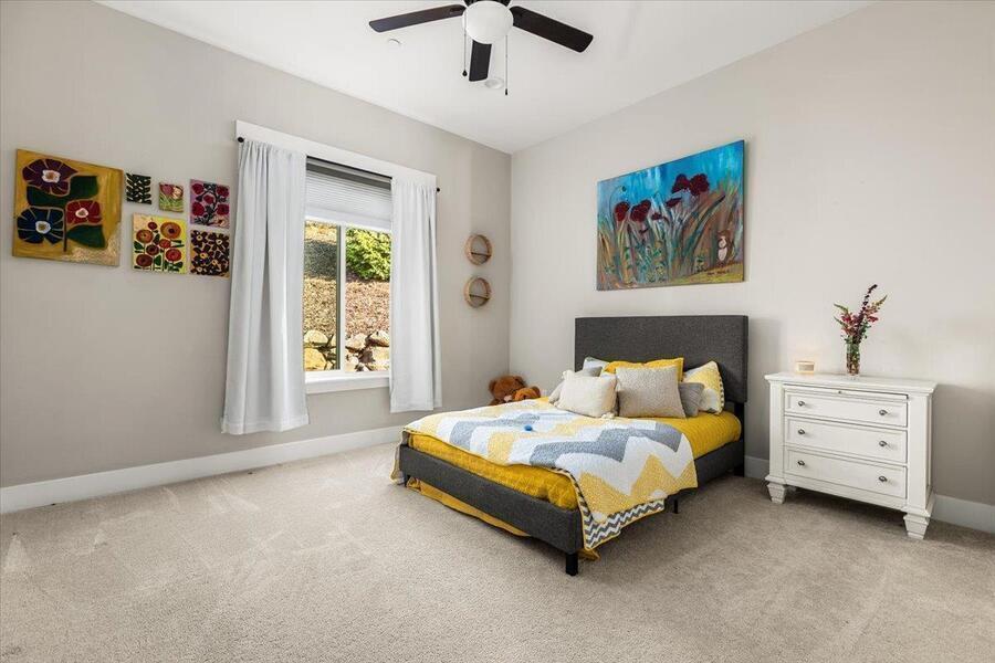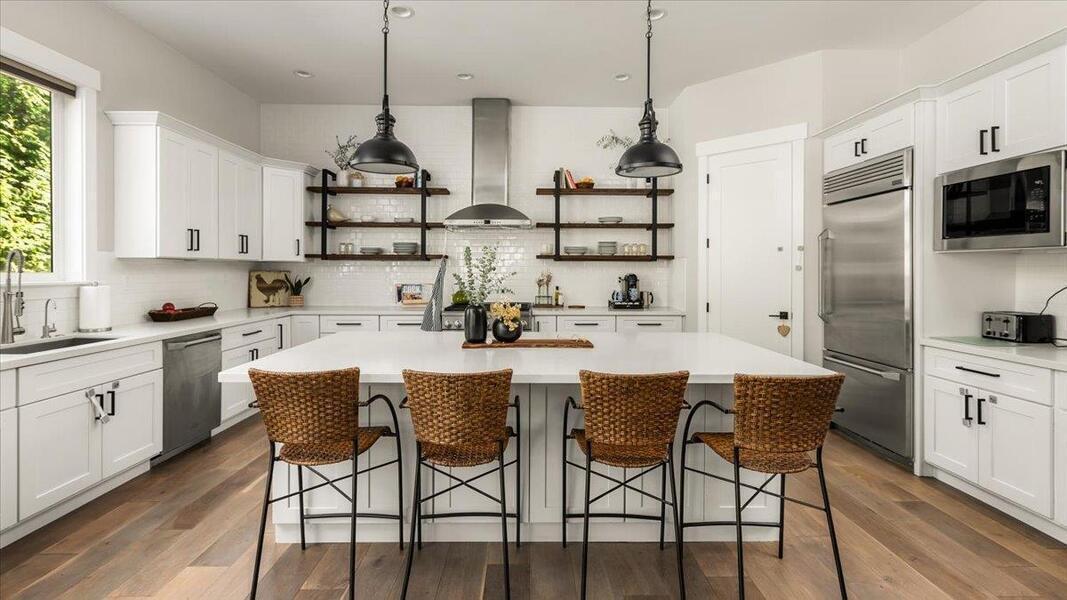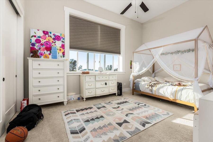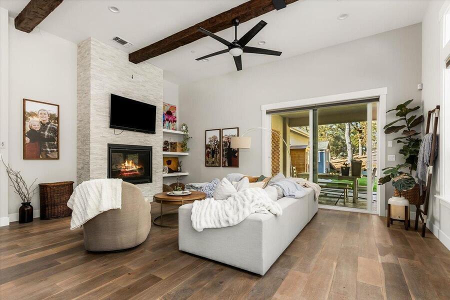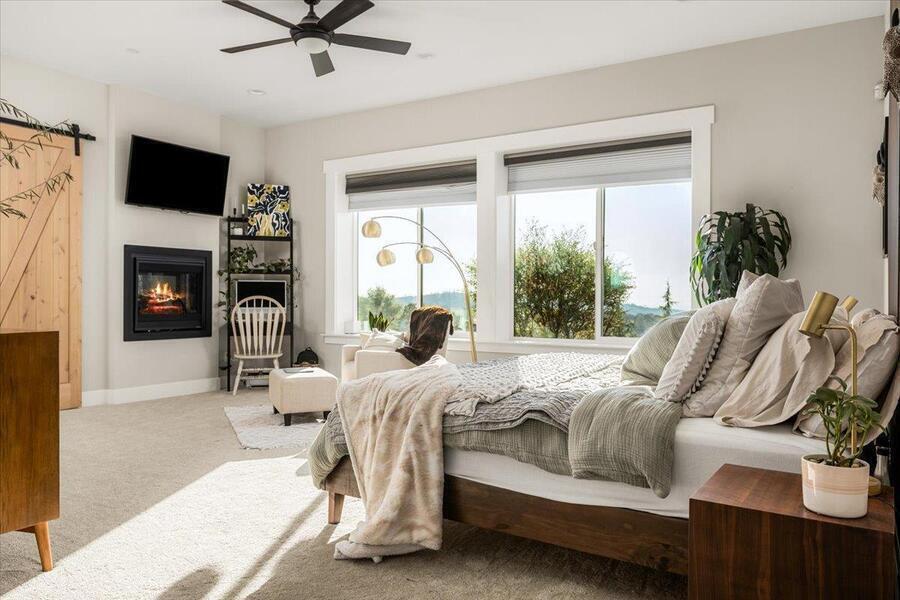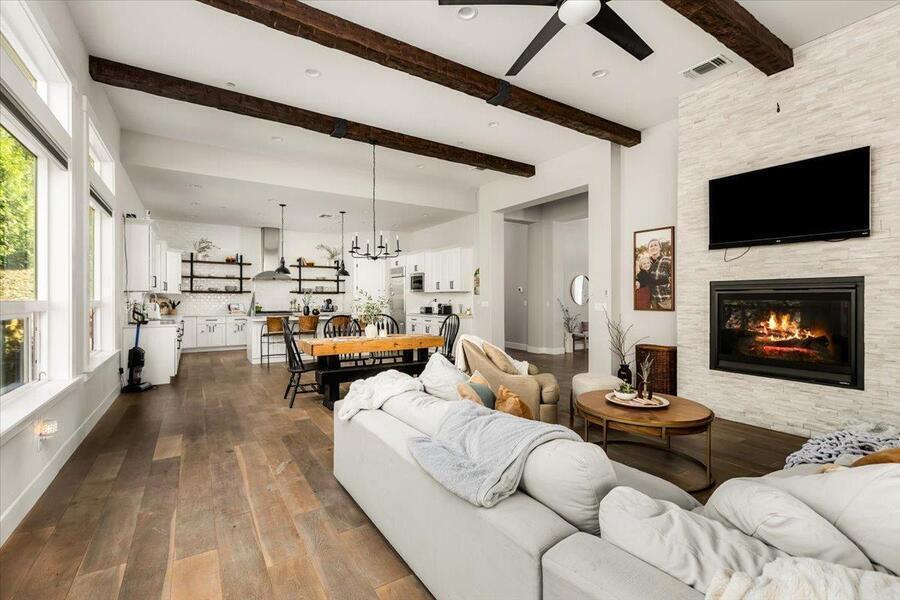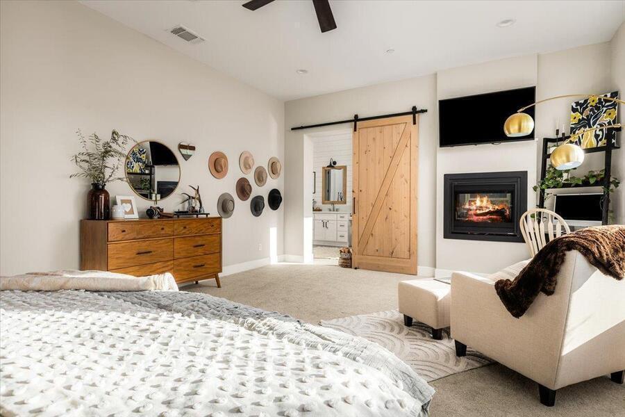 Step inside & you’ll be welcomed by soaring 12-foot ceilings, luxury finishes, & an open thoughtful layout that’s ideal for entertaining or relaxing. W/ 4 spacious bedrooms & 3 bathrooms across 3,260 sq. ft., this home balances comfort & fun w/ ease. The chef’s kitchen is the heart of the home, showcasing a generous island, Carrera countertops, professional stainless appliances, & a walk-in pantry perfect for gathering w/ family & friends. The primary suite feels like a private getaway w/ a cozy sitting area, double-sided fireplace, & a spa-inspired bath featuring a soaking tub, walk-in shower, & custom barn door. A 2nd suite adds even more flexibility whether for extended family or weekend guests.